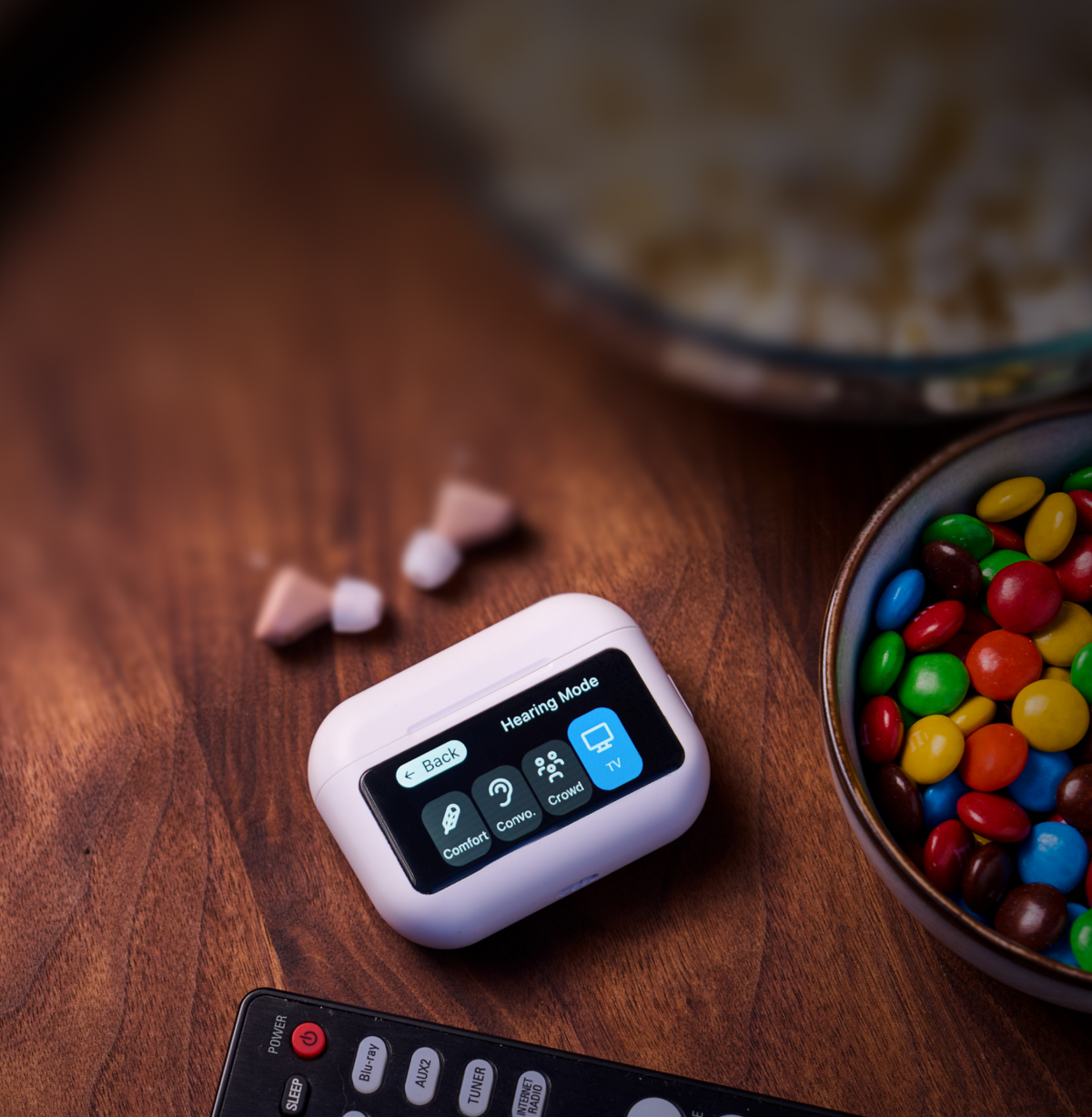 Meet Atom X—the world’s first touchscreen-controlled hearing aid. With our groundbreaking CaseControl™ technology, you can adjust modes and volume directly from a built-in touchscreen on the portable charging case—no app, no tiny buttons, no hassle.